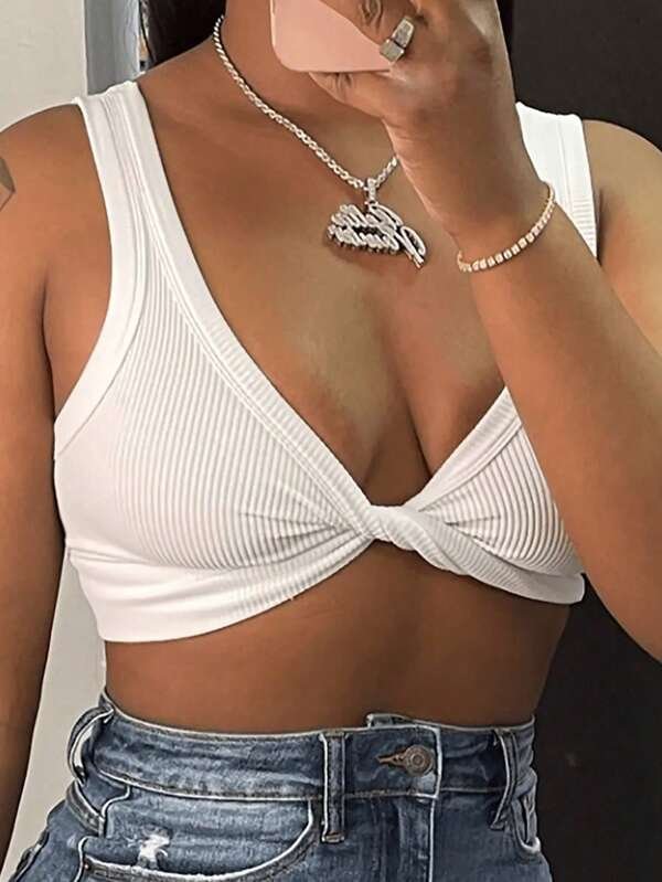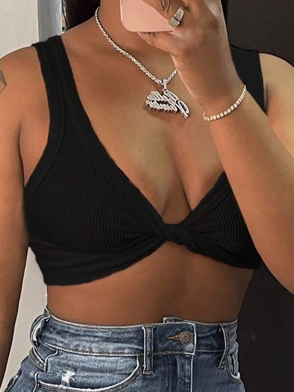 Brand's Women Ribbed Twist Front Crop Top
