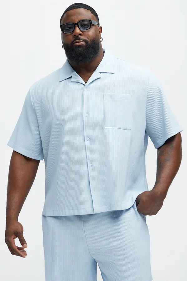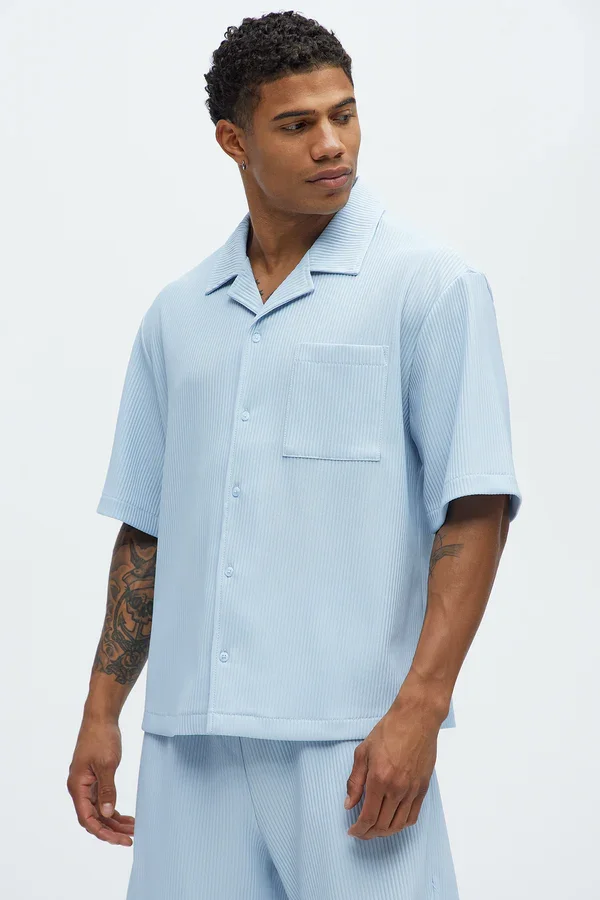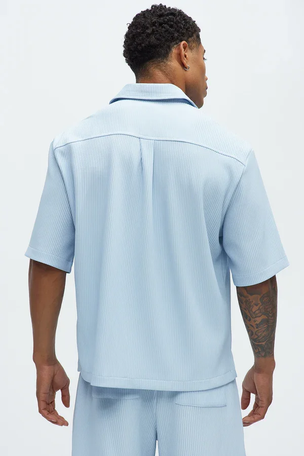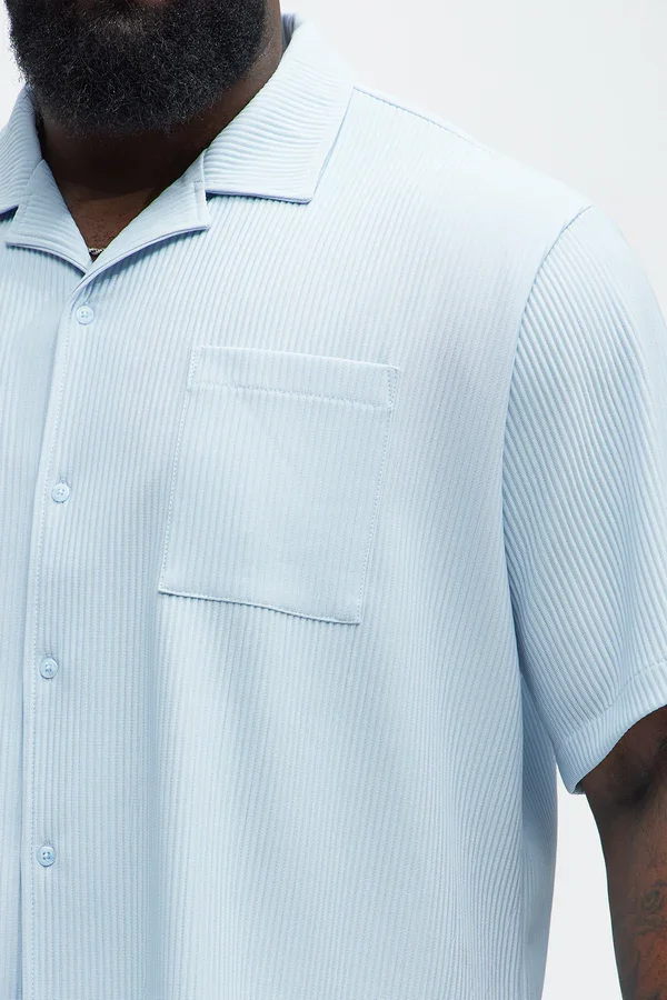 Show Up Short Sleeve Cuban Shirt - Light Blue