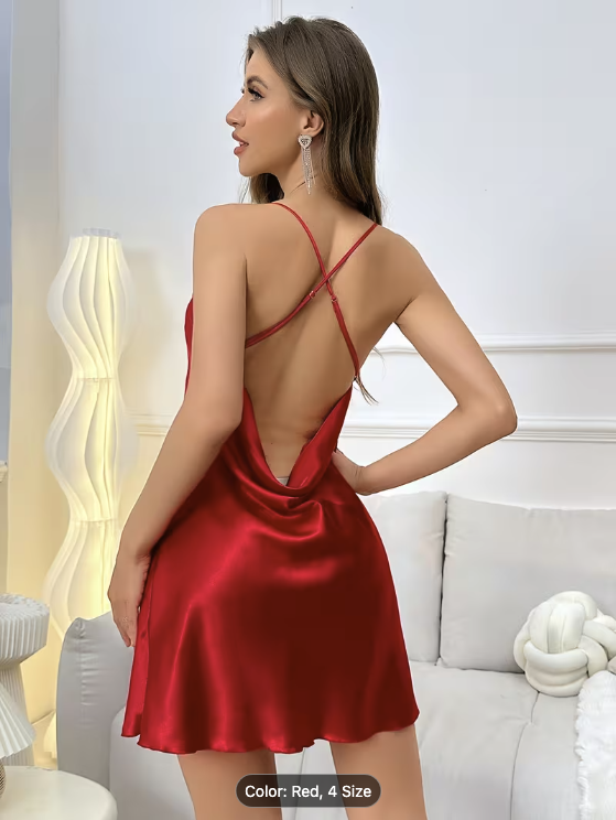 Women's Elegant Sexy Nightdress - Solid Color Red
