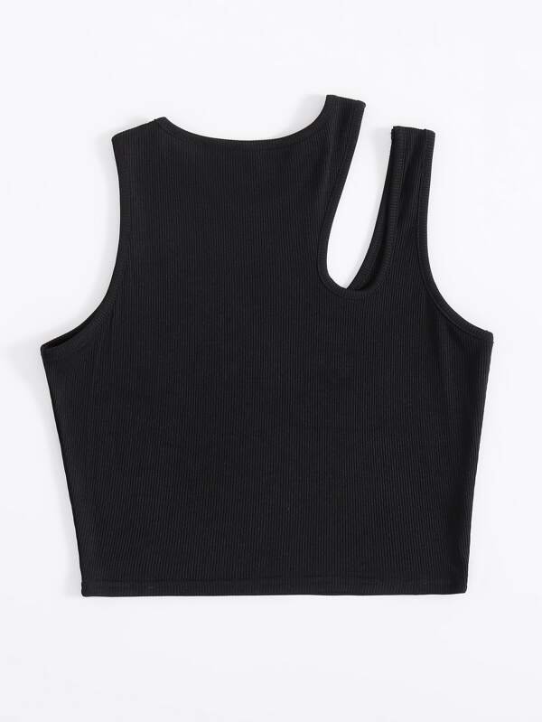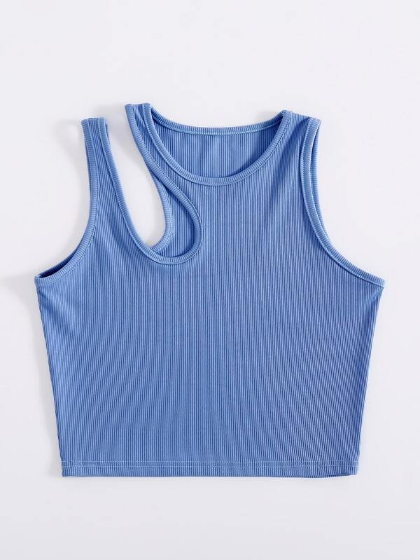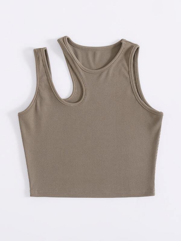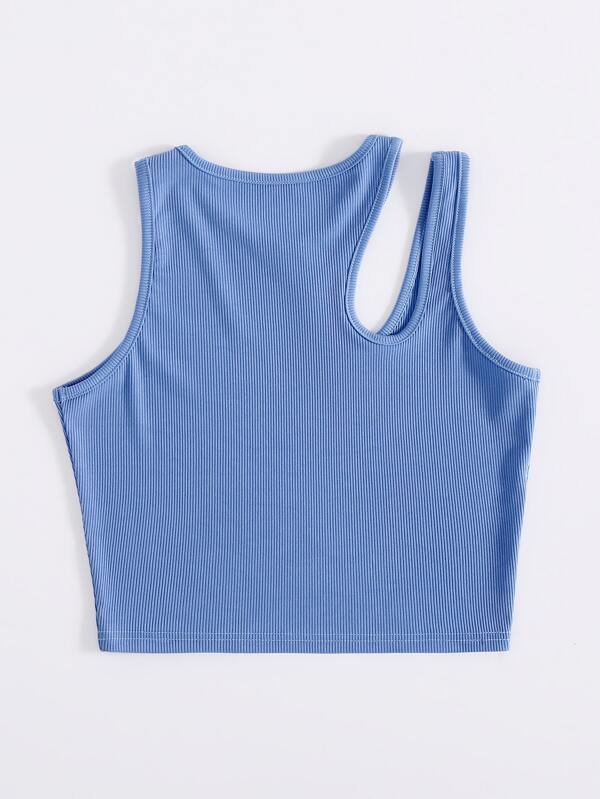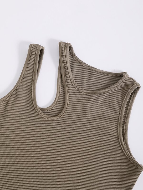 Solid Cut Out Shoulder Ribbed Knit Tank Top